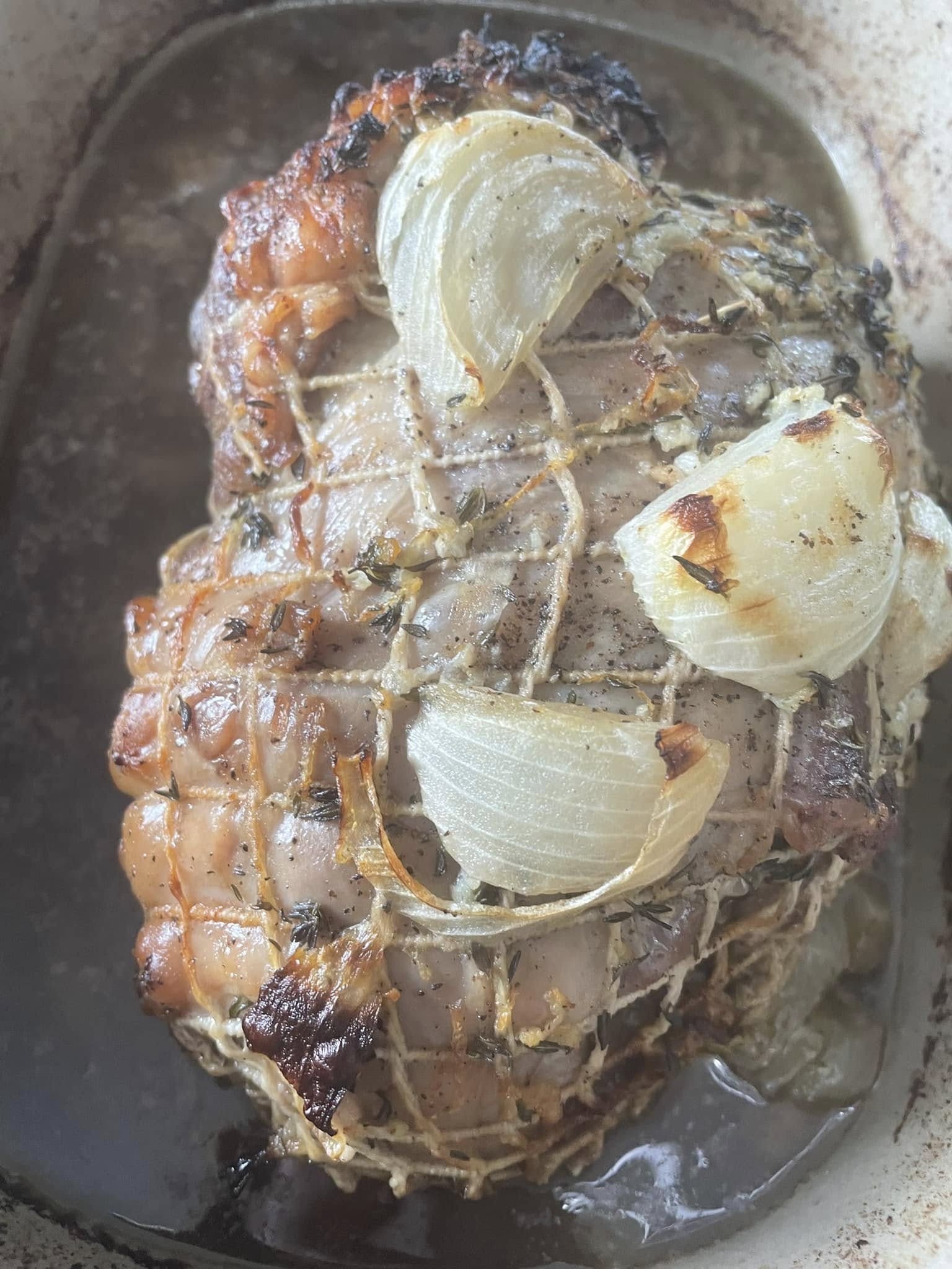 10. Slice and serve with extra onions and juices from the pan